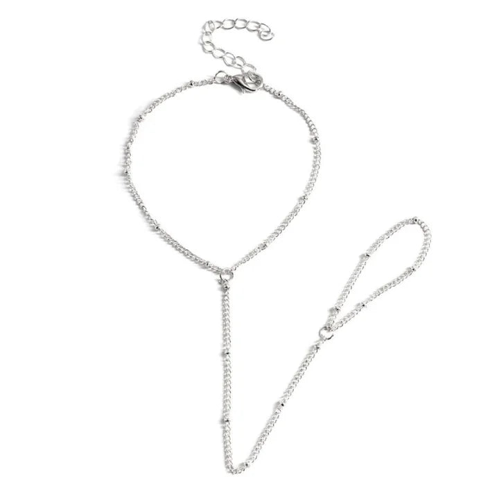 Gracefully bridging the wrist and finger, this hand chain is a delicate fusion of bracelet and ring