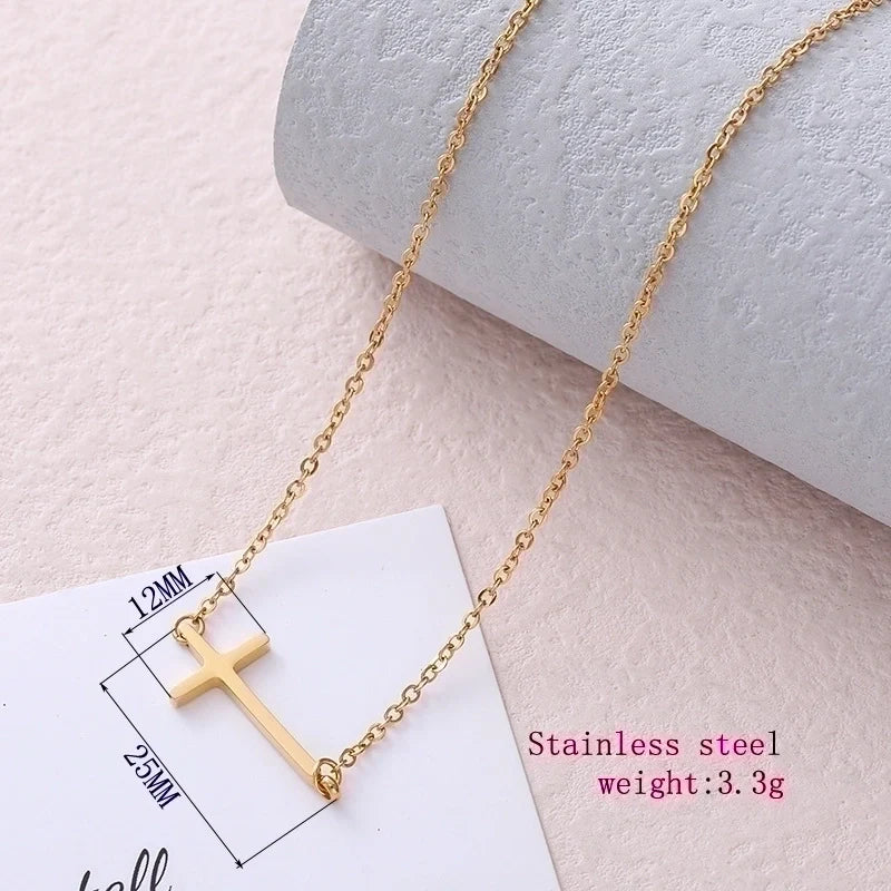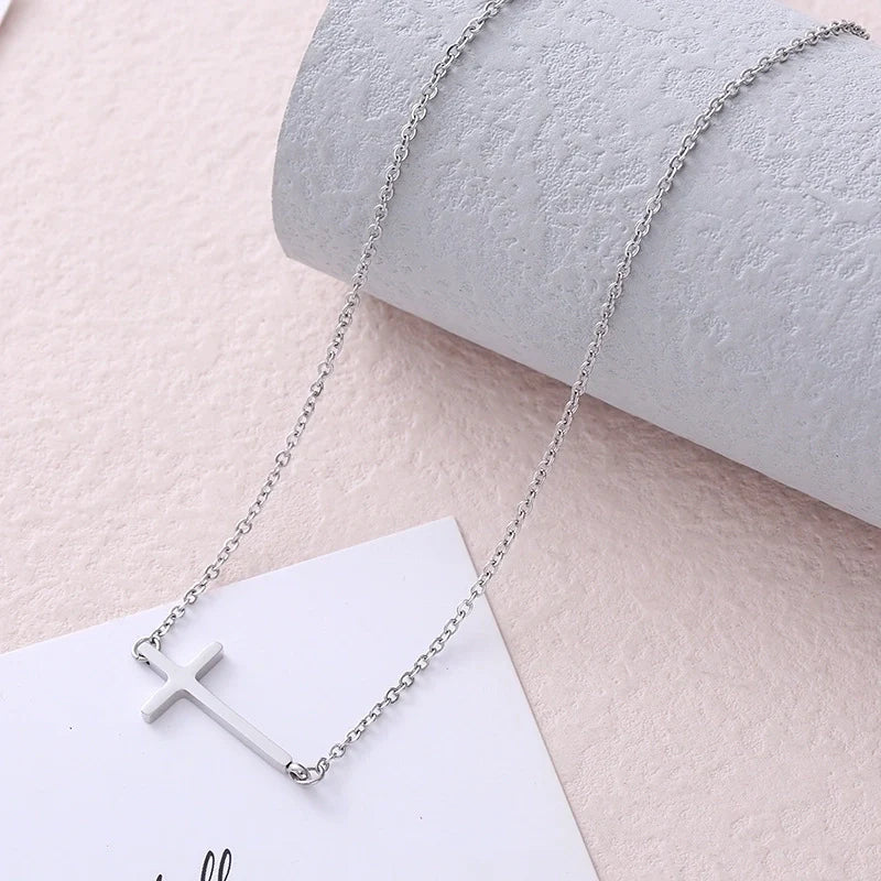 This delicate necklace features a minimalist cross pendant, perfect for everyday wear.  Available in Silver and Gold.