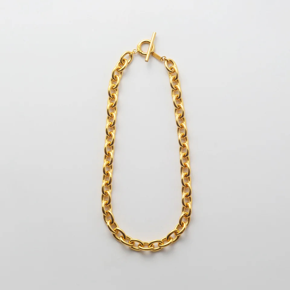 A modern twist on a timeless chain. The Loop Toggle necklace pairs chunky links with a minimalist toggle clasp. Waterproof and tarnish-resistant, it’s designed to glow with every gesture.