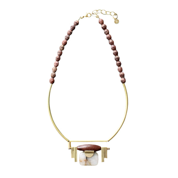 $68.00 $42.00Burgundy and Jasper Art deco Pendant Necklace