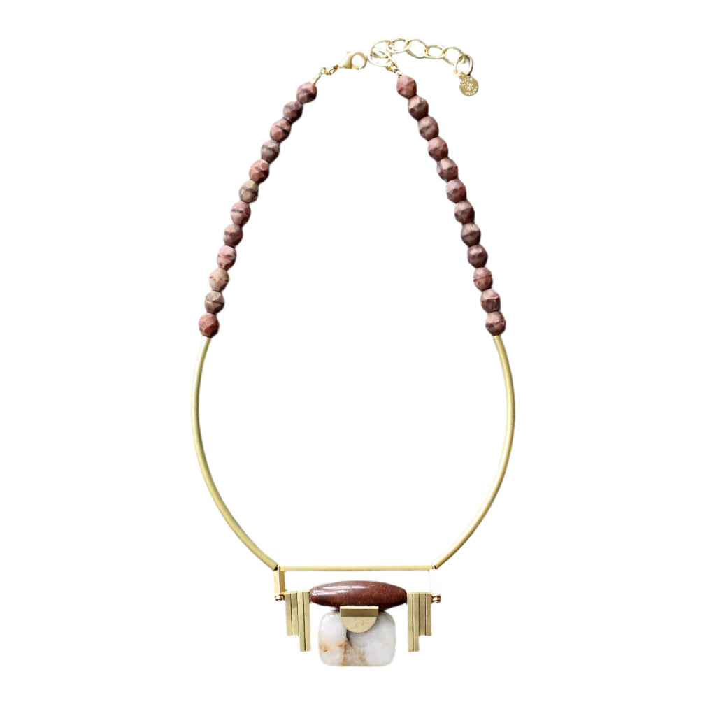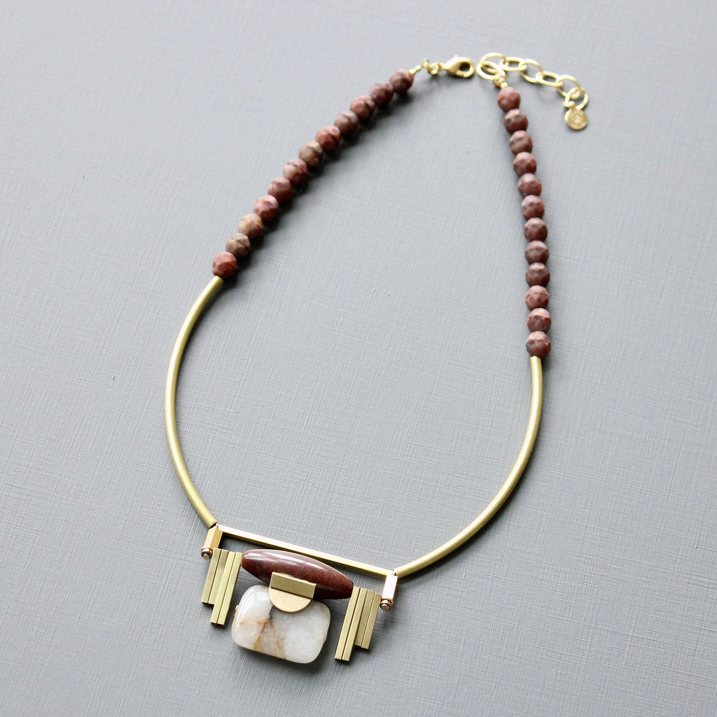 Burgundy and Jasper Art deco Pendant Necklace