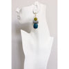 Gold plated brass hooks with wood and acrylic beads. Each earring weighs .275 oz. and measures 3 inches long. Each piece is unique so stones and glass may vary in shape, size, and color. Stone inclusions may be visible to the eye and are considered a part of their beauty.