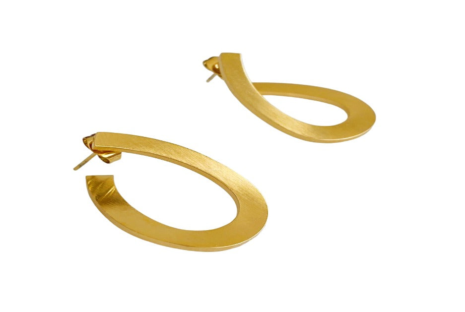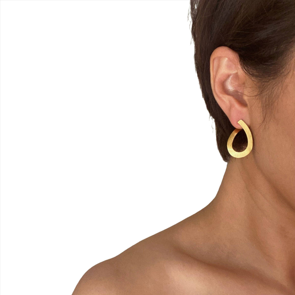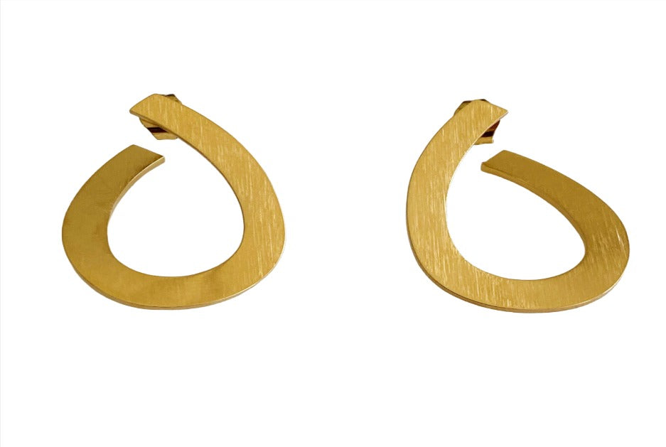 The Never Met Ever Hoop Earrings feature a beautifully curved design and a brushed finish texture for a chic and stylish statement. The end of the earring wraps around the back of your ear for a unique, dimensional look. Make a fashion statement with these versatile and stylish earrings.