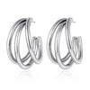 These earrings feature a bold and modern multi-hoop design, consisting of three concentric loops on each earring. The overlapping hoops create a dynamic and layered effect, making them eye-catching and versatile for both casual and formal occasions. They have a post-back closure, ensuring a secure fit. These earrings exude a contemporary elegance with a touch of sophistication. Available in Gold or Silver
