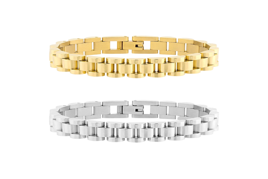 This watch strap link bracelet is a bold, elegant design sizzling with high polish finish for an unforgettable effect! This is one you'll reach for over and over again, knowing that each time you wear it, you'll look fabulous!